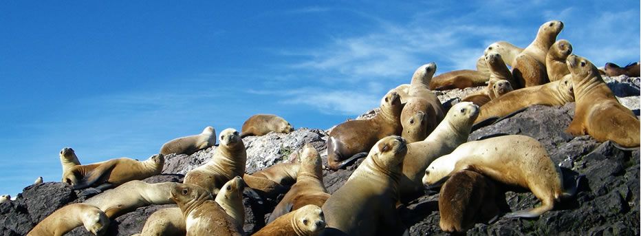 Elefantes marinos, lobos marinos de un pelo, orcas y muchas especies de aves características de la Patagonia.